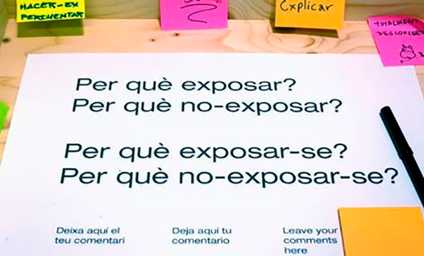 Explorant la publicació passarem tant pel procés de construcció del nou Santa Mònica com pels processos dels i les artistes involucrades en l'exposició Exposar · No exposar-se · Exposar-se · No exposar.