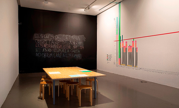 A càrrec dels artistes residents de l'àmbit de disseny editorial experimental del Santa Mònica: Silvia Renda, Estefanía Martín i Carlos Clemente