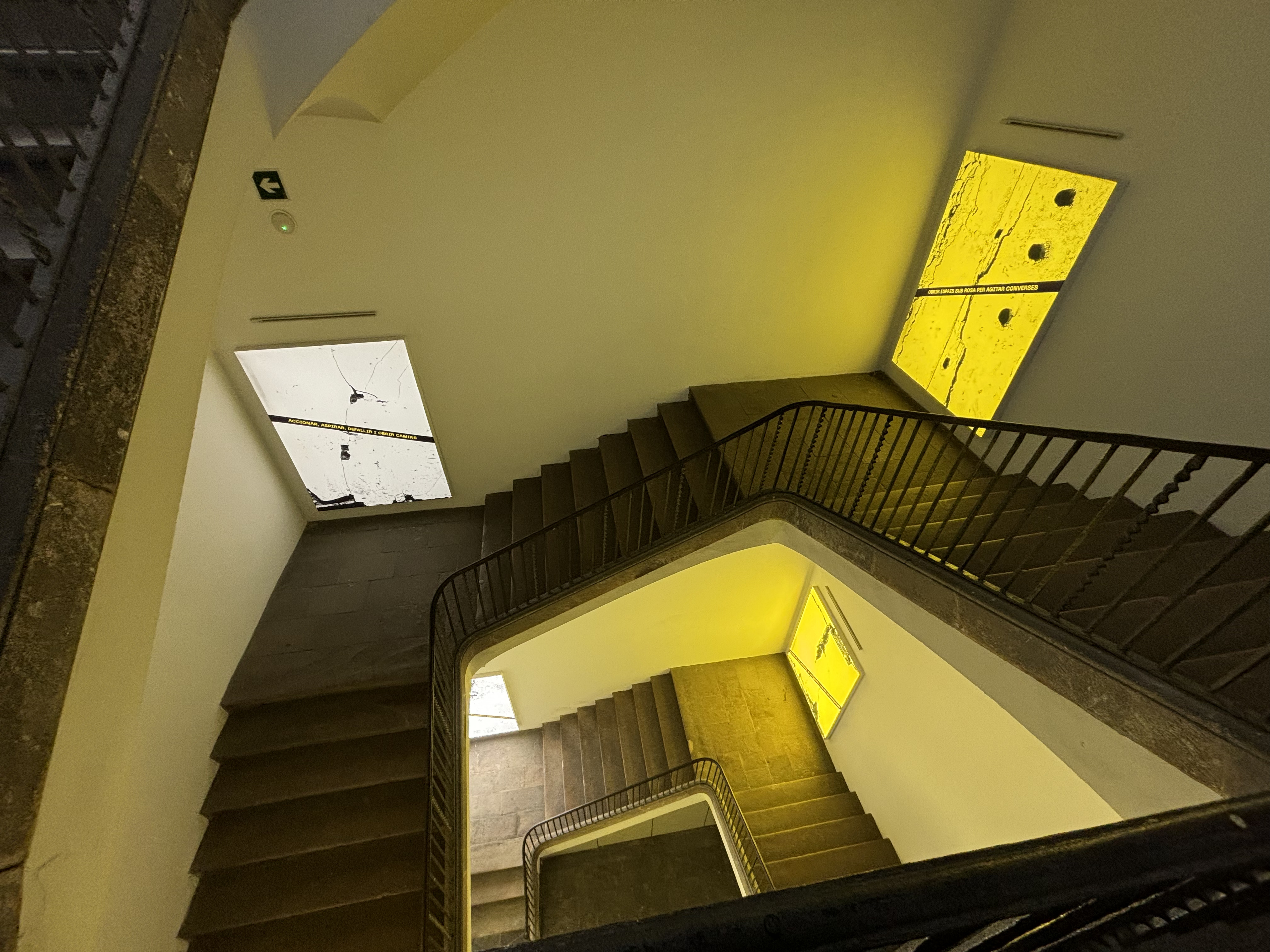 Aquestes pantalles de llum que decoren les escales del centre formen part de l’imaginari i vocabulari de “Després del vendaval”, on els col·lectius han deixat aquestes frases a mode de resistència. Et convidem a resseguir aquestes esquerdes institucionals i a visitar l’exposició fins al 12 de gener de 2025.