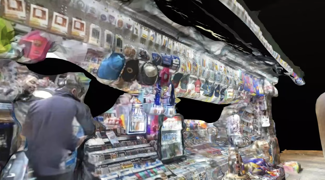 Escàner de la realitat interpretat per cossos utòpics Les Rambles es constitueixen d'una part exterior, el seu aspecte, i d'una interior, tot allò que succeeix de manera oculta, com pot ser l'activitat mercantil tant material com humana. Aquesta part externa és captada no sols per milions de cambres a mans de turistes, sinó també per càmeres de seguretat o, fins i tot, per l'ull d'un mateix que es converteix en la visió, o visions, d'un espectacle assumit per un fluid humà que transita per un espai que no tolera cap estranyesa, cap alteritat, cap negativitat i al mateix temps està plena de tot això.