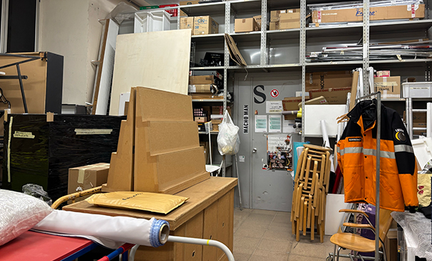Endinsa’t en un dels espais menys visibles però més essencials del centre: el seu magatzem. Un lloc ple d’històries amagades darrere de cada objecte, on es conserven i s’organitzen tots els materials necessaris per a les exposicions i el funcionament del centre.