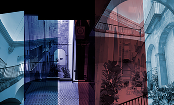 Seguint el sentit d'encontre i col·laboració de la residència artística, la proposta del Gremi d’Espais es desplega a partir d’experimentar amb la idea de desplaçament entre els espais interns i externs del Santa Mònica i viceversa. El focus de la recerca artística rau en trobar estratègies performatives per disminuir o relativitzar la distància, visible i invisible, entre el Santa Mònica i el seu entorn. El desplaçament, doncs, s'afronta tant des d'una dimensió geomètrica, funcional com des d'una dimensió intangible i relacionada amb l’experiència i la memòria de l’audiència. La transmedialitat del Gremi d’Espais, en termes generals, se situa entre les metodologies etnogràfiques, la performance i la instal·lació de dispositius analògics i digitals site-specific. Des del gremi també obrirem a la resta d’artistes residents i al públic en general sessions sobre mètodes d’observació i creació de situacions experimentals.