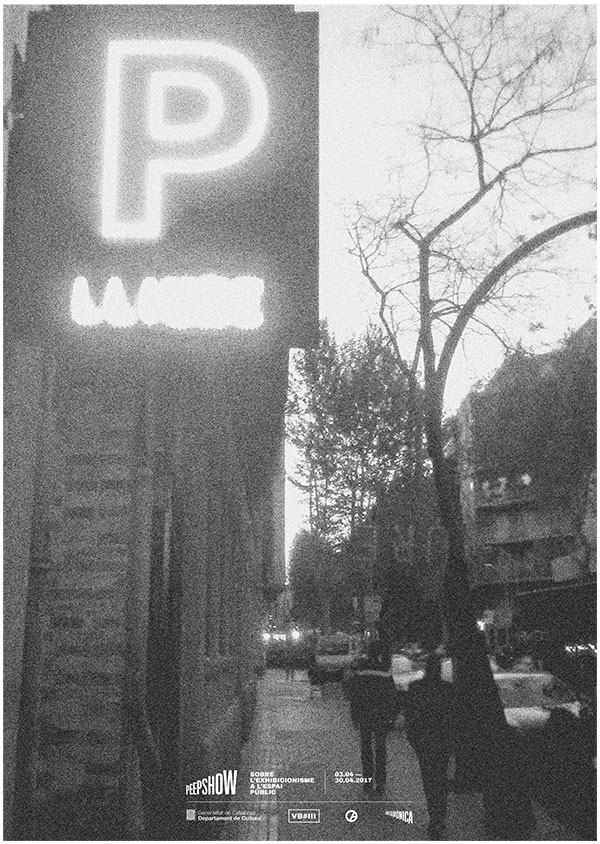Before the supremacy of our own eyes, public space, both physical and virtual, becomes a sphere of anonymity and constant exhibition, a true spectacle. A complex and difficult space to manage, where things are made, unmade, disputed, negotiated. A vital space that may even become uncomfortable. A space with an audience. Therefore, PEEP SHOW is necessarily a collective project that aims to facilitate individual reflection on the act of exposing oneself and looking in the mirror, on visual relationships between us and them, on the audience in public spaces. It is an attempt to recover a certain awareness of occupancy, of presence, of looking, of being looked at and to allow us to see ourselves as necessary political actions.