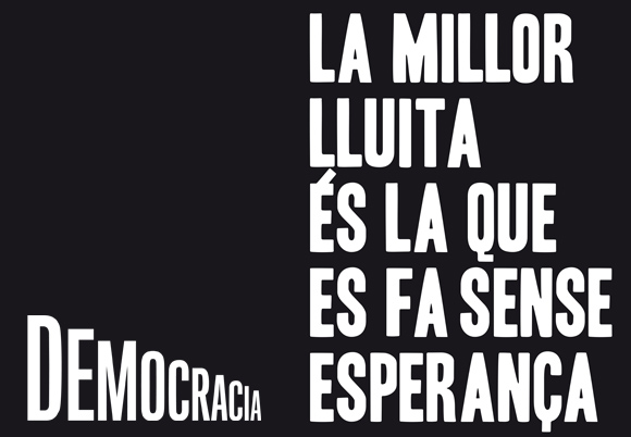 No hay espectadores es una muestra de Democracia que pone de relieve el uso reivindicativo del lenguaje en el espacio público por parte del colectivo mediante una selección de trabajos de los últimos ocho años en los cuales la palabra está cargada de ideología y posicionamiento político para convertirse en eslogan. La exposición presenta también un proyecto producido para la ocasión que homenajea la figura de Francesc Sabaté y celebra el centenario de su nacimiento.