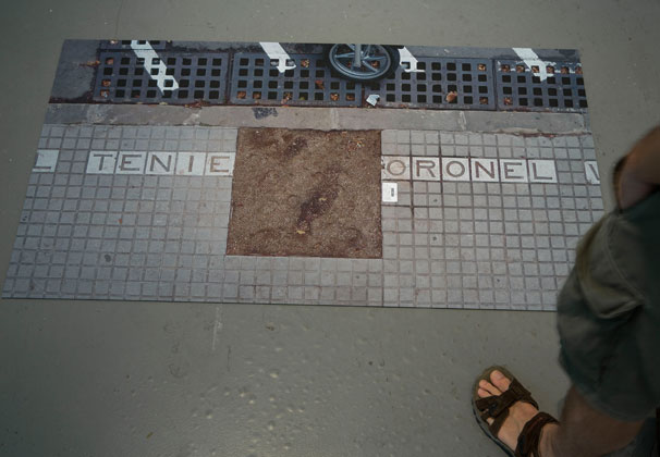 El artista apela a nuestra conciencia histórica para llamarnos a la acción. Comprometido con la preservación del patrimonio cultural material e inmaterial del país, y con el ejercicio de un activismo de guante blanco, Frederic Perers hace preceder cada uno de sus trabajos de un proceso metódico y riguroso de documentación e investigación históricas con el objetivo de iluminar y significar los conflictos políticos y lingüísticos que, precisamente por su trascendencia en la actualidad, se han mantenido interesadamente en la sombra por parte del poder dominante. Diseña sus proyectos –homenajes pendientes, como él mismo los denomina–, de acuerdo con una formalización que le permita conseguir una perfecta integración en el paisaje, rural o urbano, que interviene y, al mismo tiempo, le garantice una visibilidad suficiente para tener impacto en los que lo habitan, ya que su finalidad última es sacudir la memoria colectiva, aquella que Maurice Halbwachs define como el pensamiento continuo que retiene del pasado lo que todavía está vivo en el presente, o lo que es capaz de vivir en la conciencia del grupo que la mantiene.
