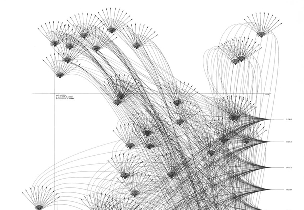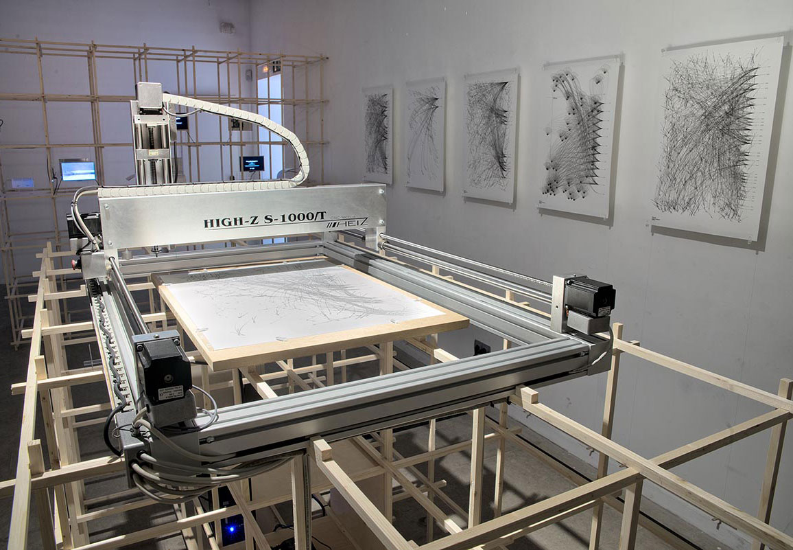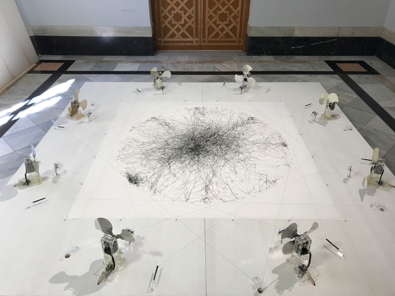 Una exposición que trata los límites y potenciales del dibujo generativo a través de los datos y mediante algoritmos matemáticos y operaciones mecánicas; y que plantea preguntas sobre la automatización, la reproductibilidad y el papel de todo lo arbitrario o accidental como fuente de experimentación creativa.