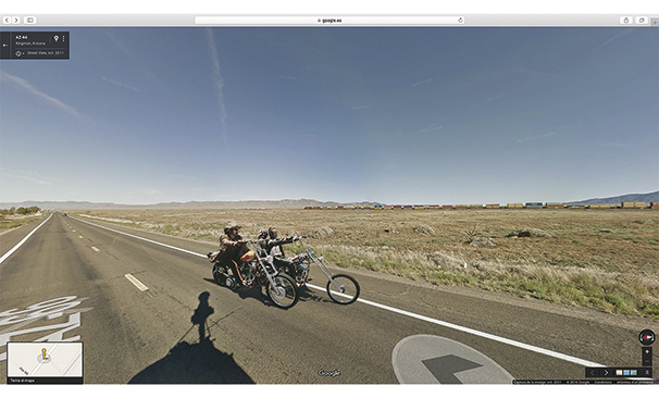 En contrast, la dimensió estranya, quasi surrealista, d’alguns paratges es veu corrompuda per la intrusió d’elements extemporanis en les composicions de collage digital efectuades per David Mayo. Alberto Salván fa un homenatge paròdic al llibre de culte Uncommon Places de Stephen Shore revisitant els llocs fotografiats pel mestre nord-americà. Azahara Cerezo localitza diferents escenaris amb missatges polítics en murs i superfícies captats per Google Street View en llocs rellevants de la Guerra Civil espanyola. Bárbara Traver presenta per mitjà de Facebook un recorregut fictici pels Estats Units a partir de Google Street View.