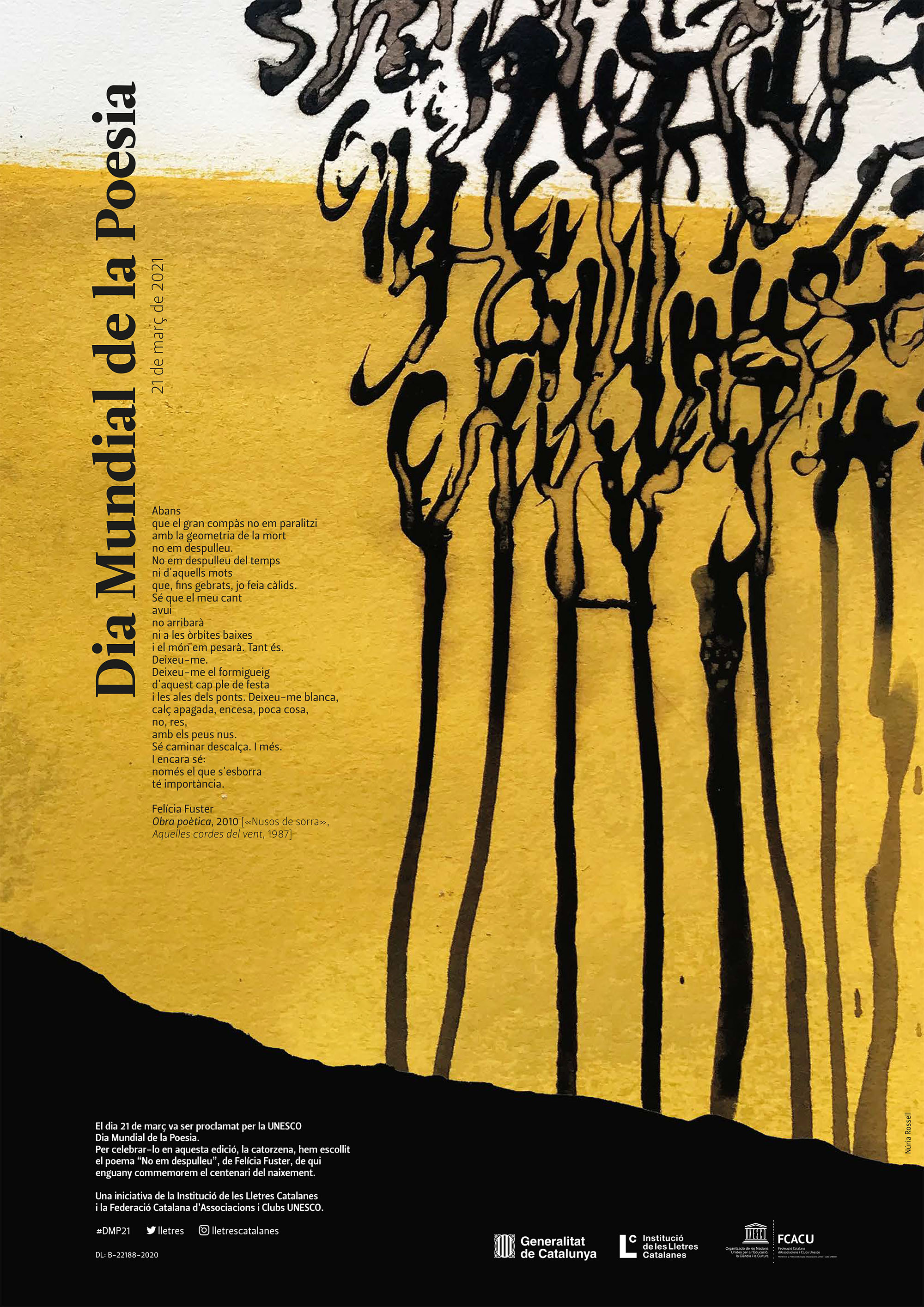 El proper dijous 21 de març, a les 17 h, celebrarem l’acte central del Dia Mundial de la Poesia 2021 (#DMP21) al claustre de l'Arts Santa Mònica de Barcelona (La Rambla, 7). Amb aquesta celebració culminarem el conjunt d’iniciatives, presencials i/o a través de la xarxa, promogudes per a l’ocasió arreu dels territoris de parla catalana i fora d’aquests per la Institució de les Lletres Catalanes, amb la col·laboració de totes les entitats i persones que han volgut participar-hi.